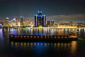Largest ship on the lakes passing detroit at night